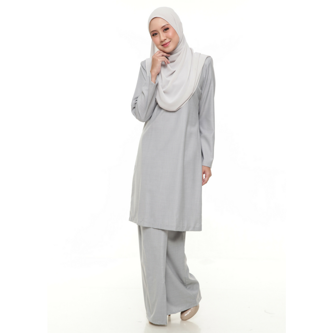 Kurung Moden Plain In Silver Grey Sheqeen The Cotton Boutique